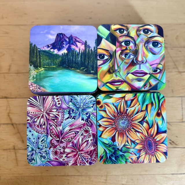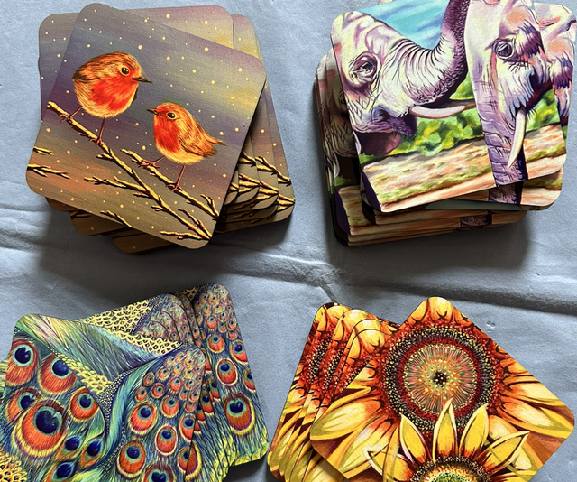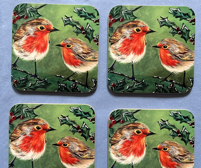 Beautifully handmade coasters in a variety of designs: Christmas, Butterfly, Petunia and Bluebells